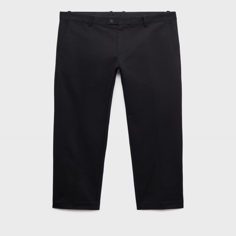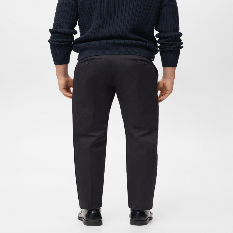 Tejido de algodón. Regular fit. Detalle de raya planchada en la parte delantera y trasera. Cierre delantero de cremallera y botones. Trabillas para cinturón. Dos bolsillos laterales. Dos bolsillos de ribete con botón en la parte posterior.