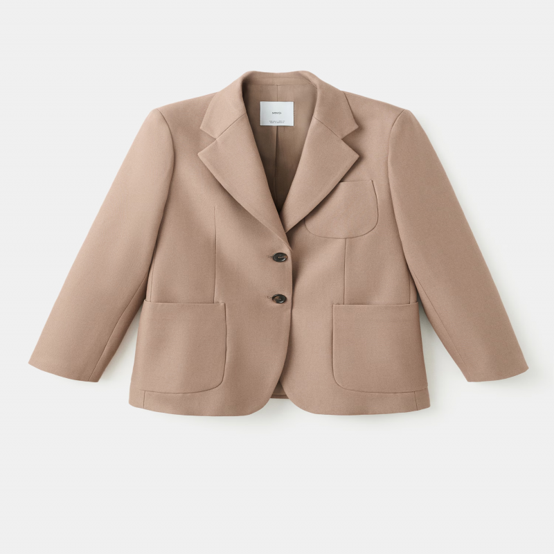 Tejido mezcla de lana. Estilo traje. Diseño recto. Cuello pico con solapa. Solapas con muesca. Manga larga con puños abotonados. Bolsillo de parche en el pecho. Dos bolsillos de parche frontales. Cierre de dos botones en la parte delantera. Forro interior. Total look. Disponible Plus.